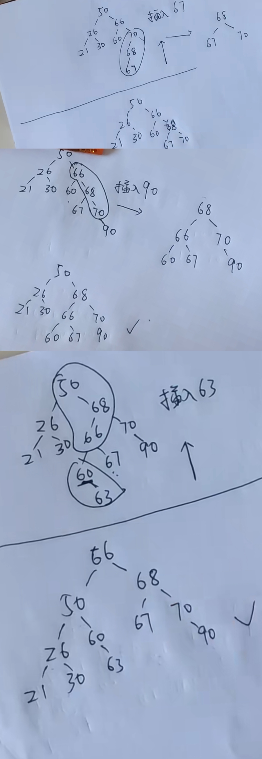 一个表(数的集合)构造成平衡二叉树则相当于把每个节点插入到的树中,若插入某个节点时树不平衡则用上述方法